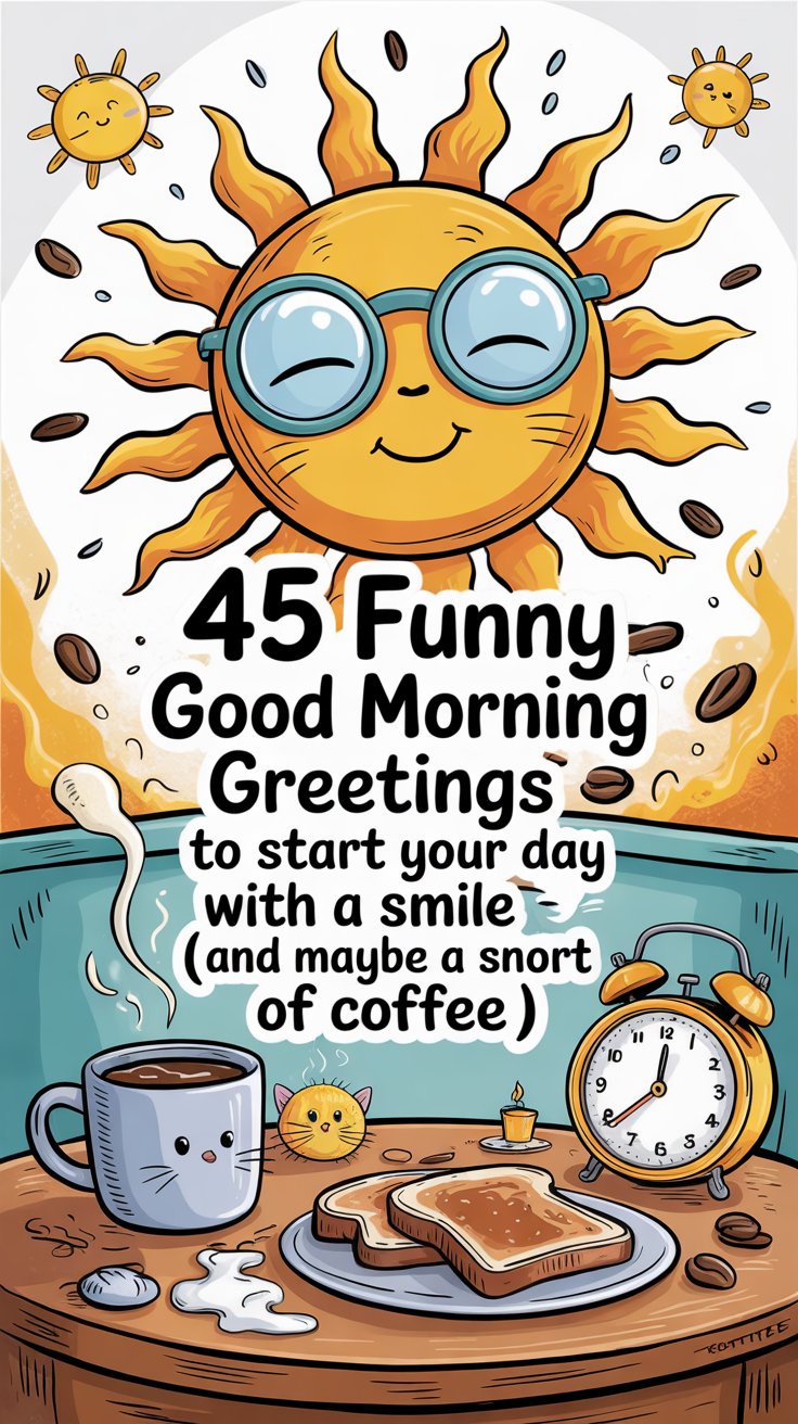 So there you have it — 45 hilarious good morning greetings to turn groggy mornings into giggle-filled ones! Whether you’re texting a friend, posting a meme, or just trying to survive Monday with dignity, these quotes remind us that laughter is the best alarm clock. Next time you wake up grumpy, remember: you can’t stop the sun from rising, but you can definitely laugh at it. ☀️😂 So brew that coffee, crack a smile, and start your day on the funniest note possible!