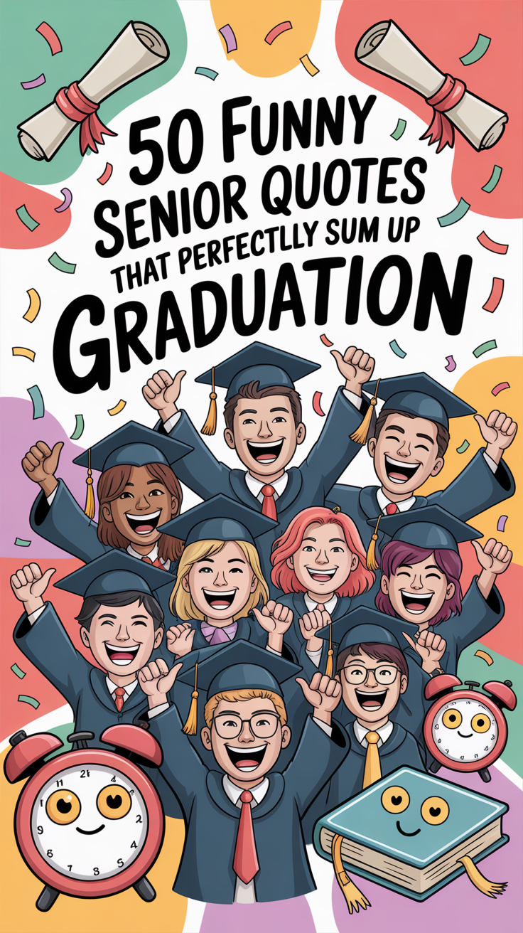 Graduation is one of those rare moments where excitement, relief, panic, and pride all collide at once—and nothing captures that chaotic energy better than a perfectly timed senior quote. Whether it’s sarcastic, brutally honest, or laugh-out-loud relatable, funny senior quotes have a way of freezing an entire high school experience into one unforgettable line. For Pinterest creators, these quotes are pure gold: shareable, emotional, and endlessly relatable for students, parents, and nostalgia-loving scrollers alike. Below, you’ll find 50 funny senior quotes, each paired with a short meaning to give context, spark emotion, and make every quote hit even harder.