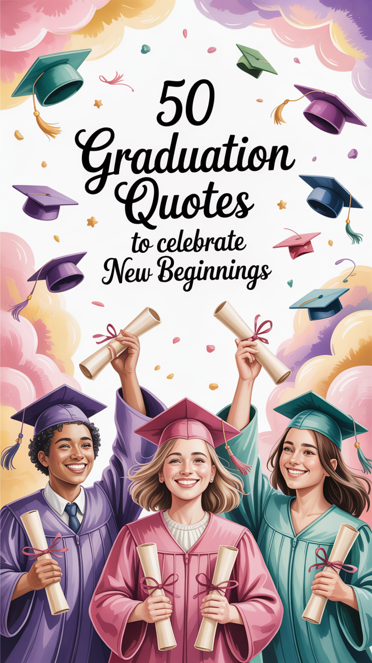 Graduation is more than a milestone — it’s a launching point into a world full of opportunities waiting to be explored. These 50 quotes were created to help you celebrate the journey, honor the hard work, and capture the excitement of stepping into something new. Whether you’re sharing these on Pinterest, writing a card, or marking your own achievement, may these words inspire confidence, courage, and endless possibility.