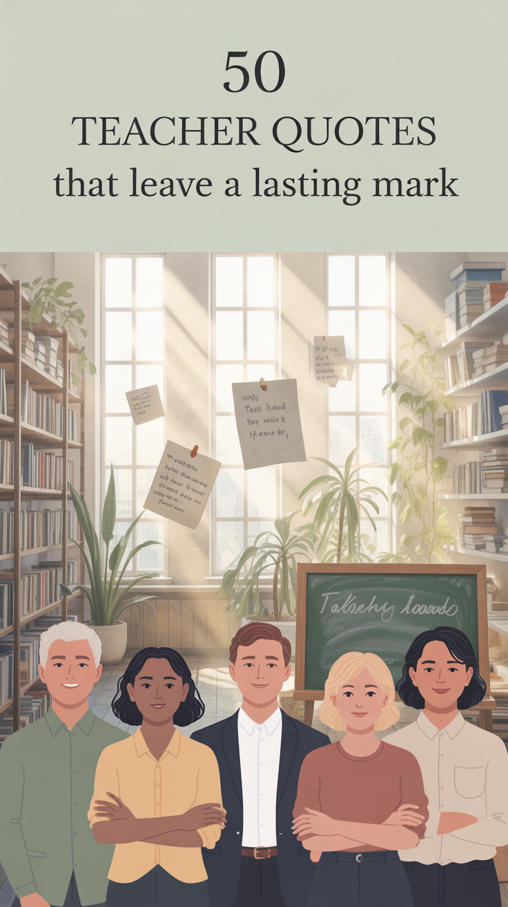 Teachers do far more than deliver lessons; they shape perspectives, confidence, and character in ways that last a lifetime. These 50 teacher quotes highlight not only the words that honor educators, but the deeper meaning behind their work and dedication. For Pinterest creators, writers, and readers alike, this collection serves as a timeless resource for inspiration, reflection, and gratitude. Whether used in blog posts, classroom decor, social media captions, or personal journals, these quotes remind us that teaching is one of the most powerful forms of influence. Save this list, share it with fellow educators, and let these words continue spreading appreciation for those who make learning possible every single day.
