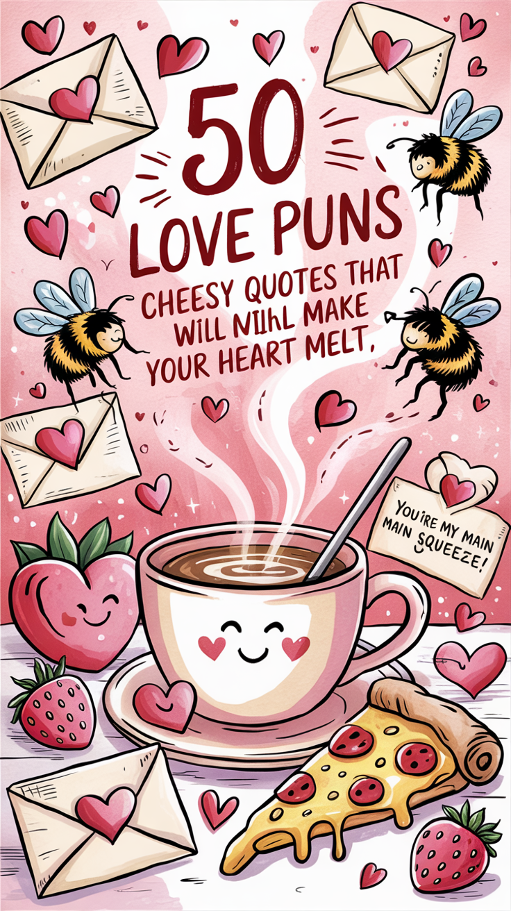 Sometimes the best way to say “I love you” isn’t with grand speeches — it’s with a playful pun that makes someone laugh and blush at the same time. These 50 love puns cheesy quotes are perfect for Valentine’s cards, Instagram captions, handwritten notes, or cute Pinterest boards that spread a little extra sweetness.
