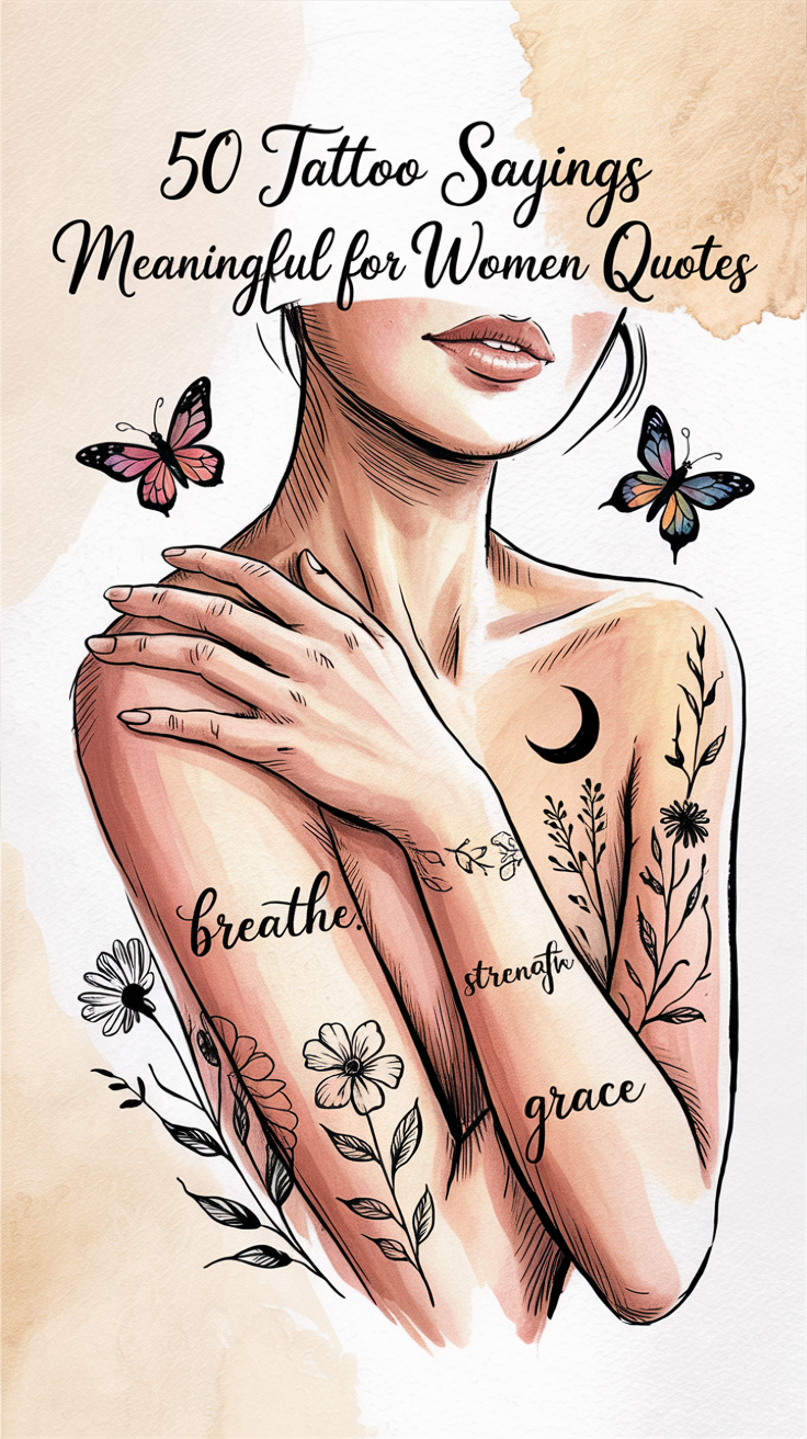 A tattoo isn’t just ink on skin — it’s a story, a memory, or a quiet rebellion written in art. For women, every tiny symbol, word, or phrase can hold entire chapters of strength, heartbreak, healing, or self-love. Whether it’s your first piece or your tenth, finding the right quote matters — because it becomes part of you. In this collection, you’ll find 50 meaningful tattoo sayings for women, each paired with a short meaning to help you choose the phrase that truly speaks to your soul. These are not just words; they’re mantras for life — etched forever in beauty and purpose.