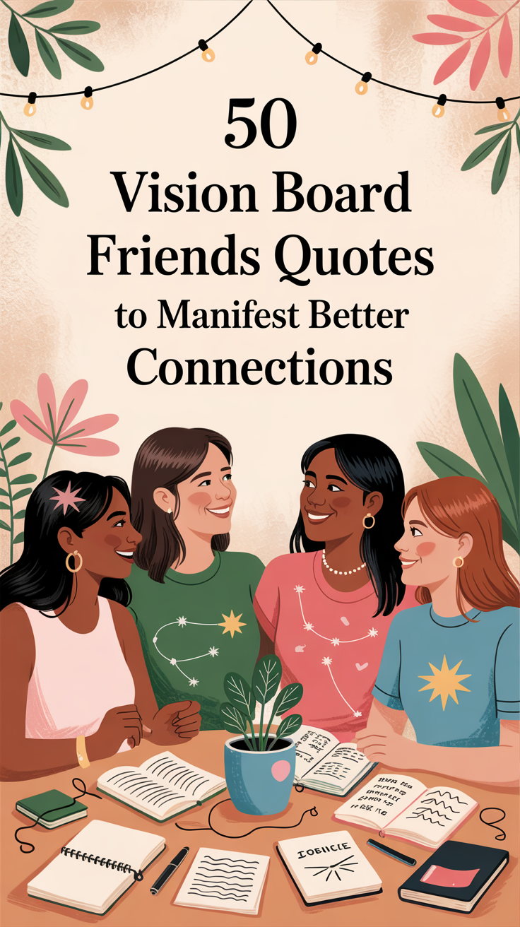 Your vision board isn’t complete without space for meaningful friendships. These vision board friends quotes with meaning are crafted to inspire intentional connections, emotional alignment, and supportive circles. Use them in Pinterest pins, affirmation boards, or personal growth content to attract friendships that grow with you and support the life you’re creating.