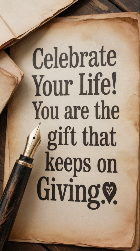 99. “Celebrate your life! You are the gift that keeps on giving.” – Unknown Meaning: Recognizes the birthday person’s ongoing positive impact on others’ lives.